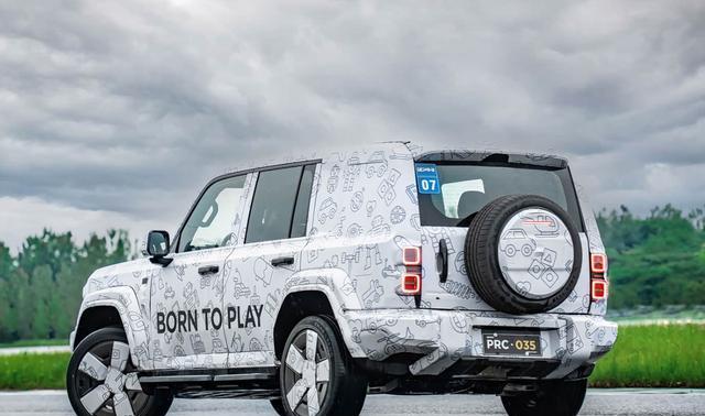 至于车身尾部,iCAR V27也采用了竖向排列的两个矩形灯组,同样是硬派越野标志性的设计语言。此外,后尾门采用了冰箱式的侧开门设计,搭裸露在外的全尺寸外挂式备胎,以及竞技风格的后保险杠,这些设计元素也进一步强调了iCAR V27的硬派气息。另外在车辆尺寸方面,iCAR V27的车长超过了5米,而车身高度和宽度都接近两米,所以单从数据上看,就已经能够意识到这台车的体量感。作为参考,同样定位中大型硬派SUV的深蓝G318,这台车的“三围”数据是5125/2025/1895mm(1950),轴距2880mm,所以两台车在尺寸表现上应该大差不差。