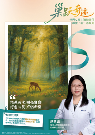 近年来,随着“手术+化疗+维持治疗”三驾马车的全程管理治疗模式的全面践行,我国卵巢癌患者的5年生存率稳步提升,2024年6月国家癌症中心公布的数据显示,2019—2021年我国卵巢癌五年生存率为39.6%。与此同时,基因检测如BRCA及HRD检测技术的日益普及,不仅推动了卵巢癌迈入精准治疗时代,也帮助了越来越多的患者通过个体化精准治疗,实现更长生存。广西妇科肿瘤临床治疗质量控制中心主任、广西医科大学附属肿瘤医院妇科主任医师李力教授表示,随着卵巢癌整体诊疗水平的进步,卵巢癌已进入慢病化管理时代,越来越多的晚期卵巢癌患者经过科学、规范的治疗和全程管理,延长了无进展生存期和总体生存时间。同时,身心关怀和专业知识普及,将进一步提振卵巢癌患者抗癌的决心。“巢跃奇迹”患者关爱公益项目已迈入第三年,从2023年“看见巢跃奇迹”卵巢癌患者公益摄影展活动的落地,首次向社会公众展现卵巢癌患者的长生存故事;2024年,首档卵巢癌科普公益有声电台《巢跃奇迹FM0508》的推出,医患携手以温暖声线传递专业的疾病科普知识;到2025年,“希望画语系列”海报在全国各地陆续展出,让公众进一步了解卵巢癌疾病领域和故事,展现奇迹故事。该项目在联动全国各地的妇瘤专家、卵巢癌患者和公众参与其中的同时,始终以崭新的面貌,探索创新的疾病科普形式,叙述真实暖心的患者故事,在加深公众对卵巢癌疾病认知的同时,也激励更多与癌抗争的“她们”坚定抗癌信念、勇敢前行,创造属于自己的延长生存的奇迹。