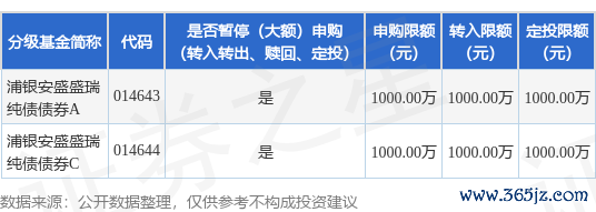 本站消息,6月19日浦银安盛基金管理有限公司发布《浦银安盛盛瑞纯债债券型证券投资基金暂停大额申购、转换转入及定期定额投资业务的公告》。公告中提示,为保护基金份额持有人的利益,加强基金投资运作的稳定性人人配,自2025年6月19日起浦银安盛盛瑞纯债债券型证券投资基金暂停大额申购、转换转入及定期定额投资业务,下属分级基金调整明细如下: