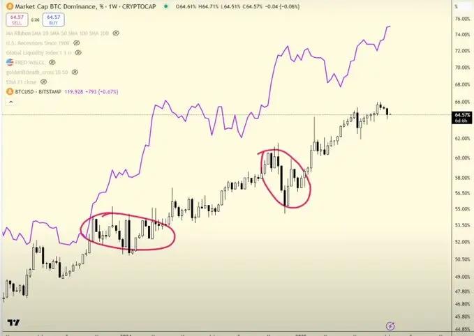 如果比特币主导地位不再上升,山寨币仍然会上涨。这正是过去两轮发生的事。