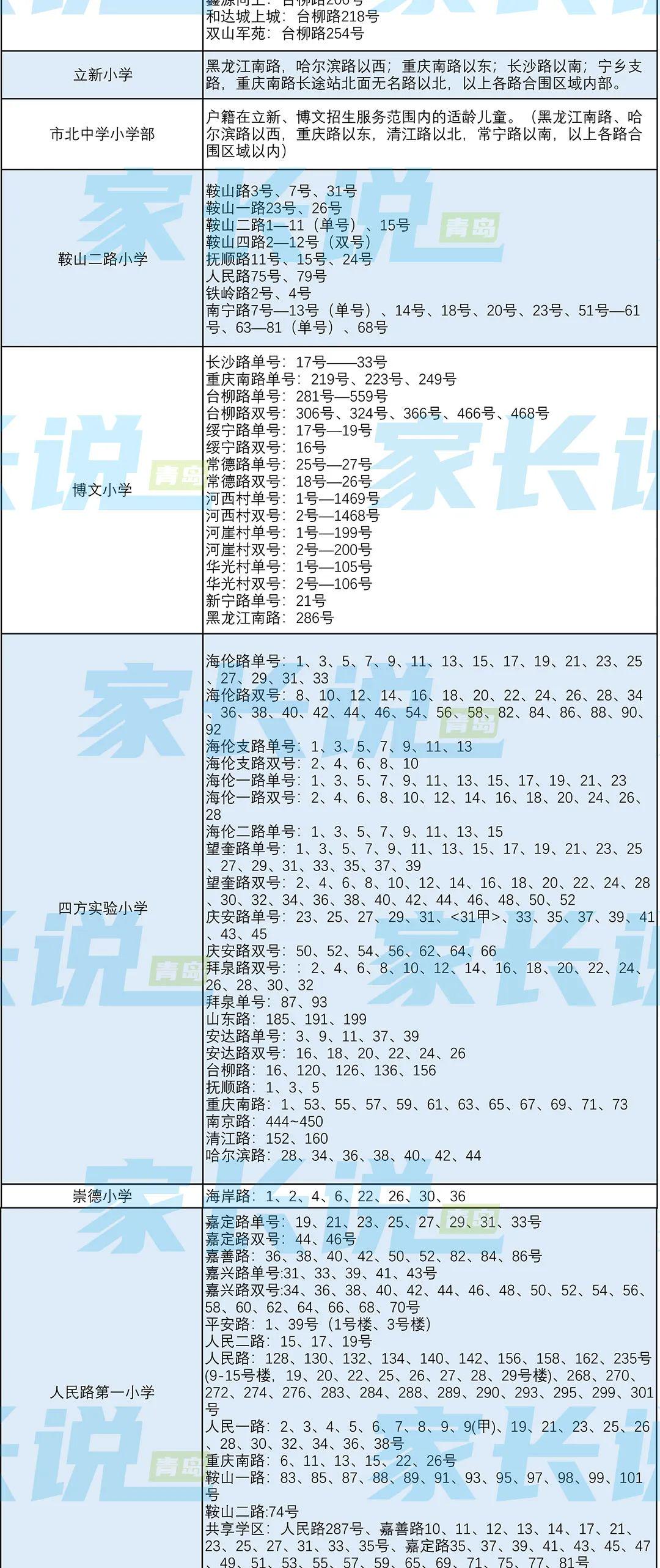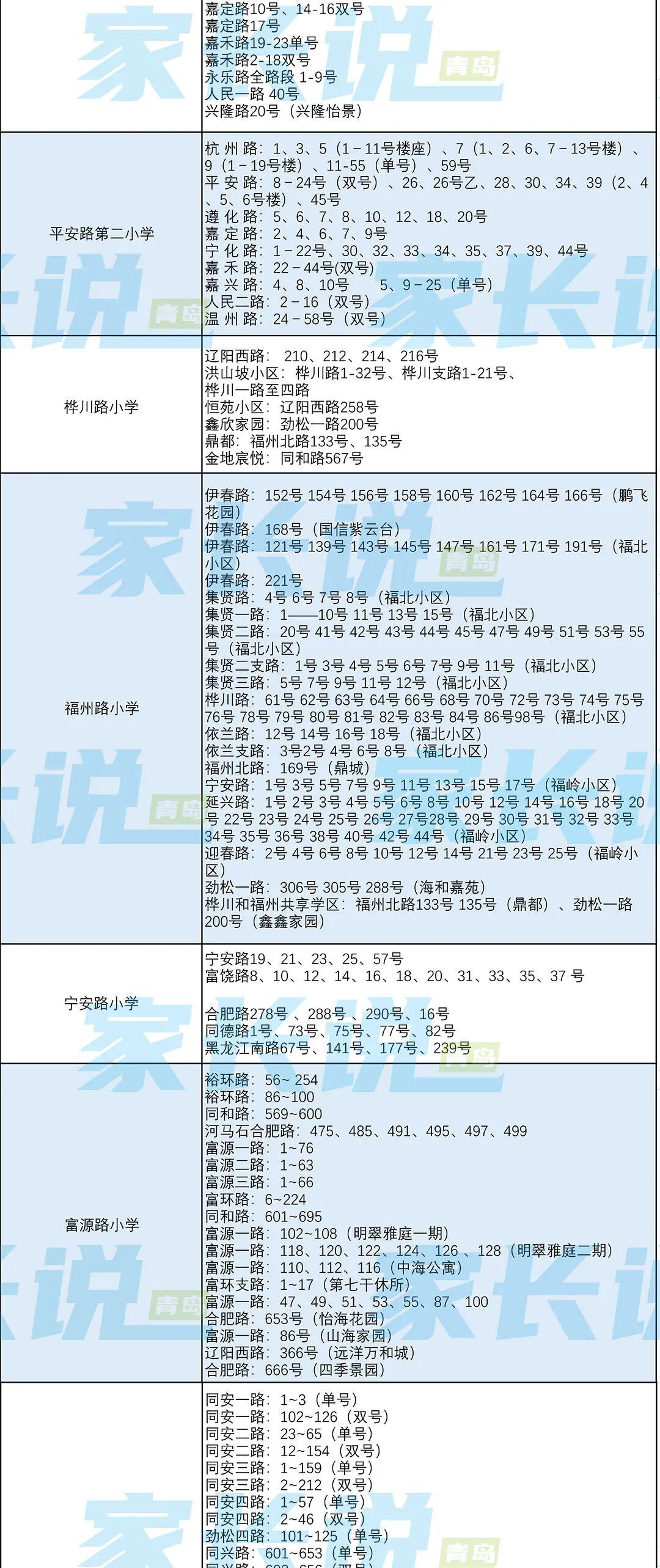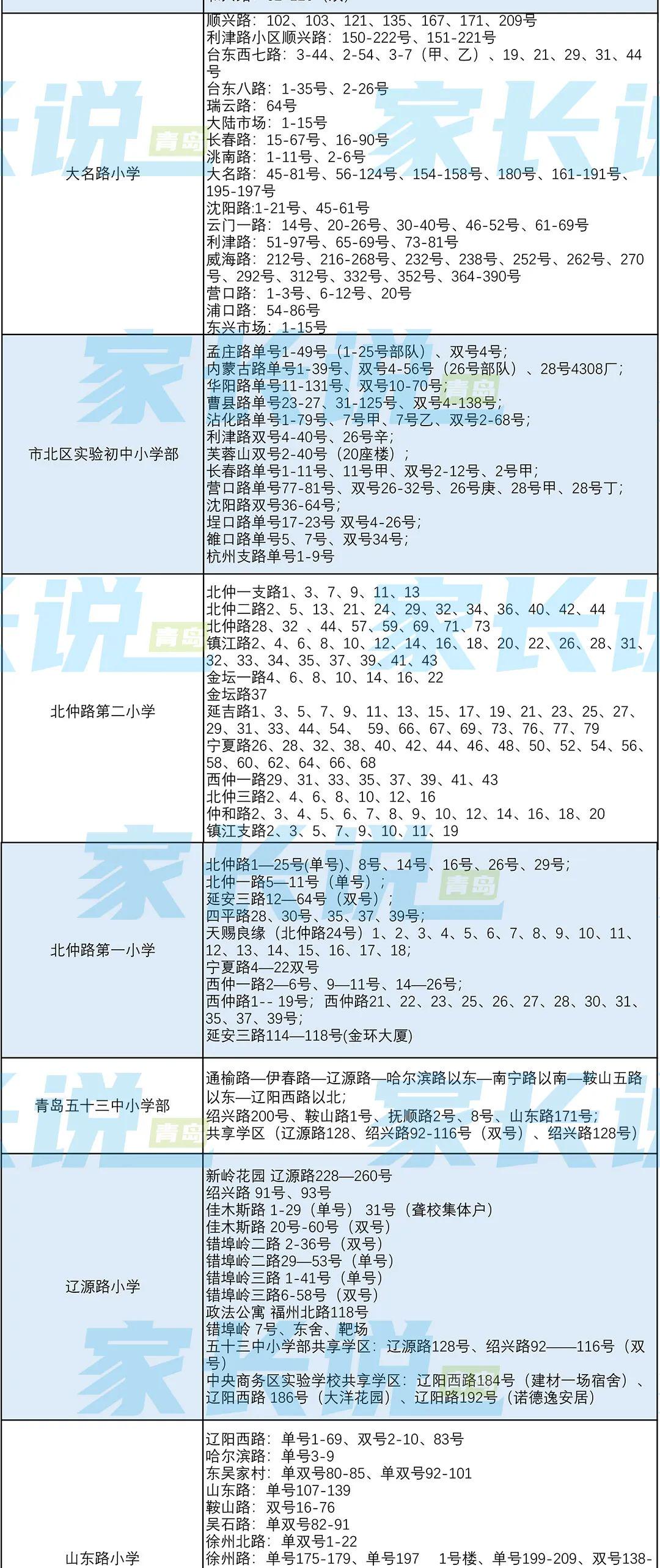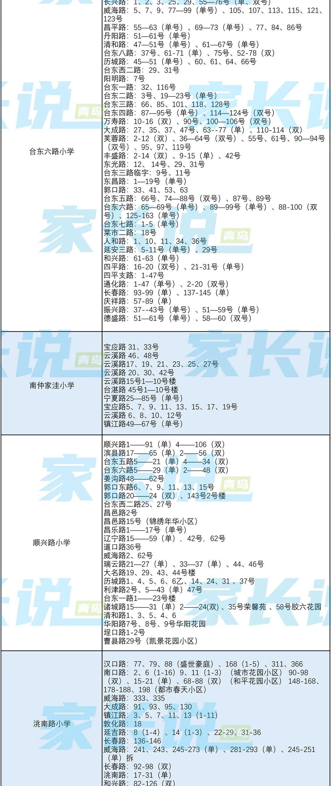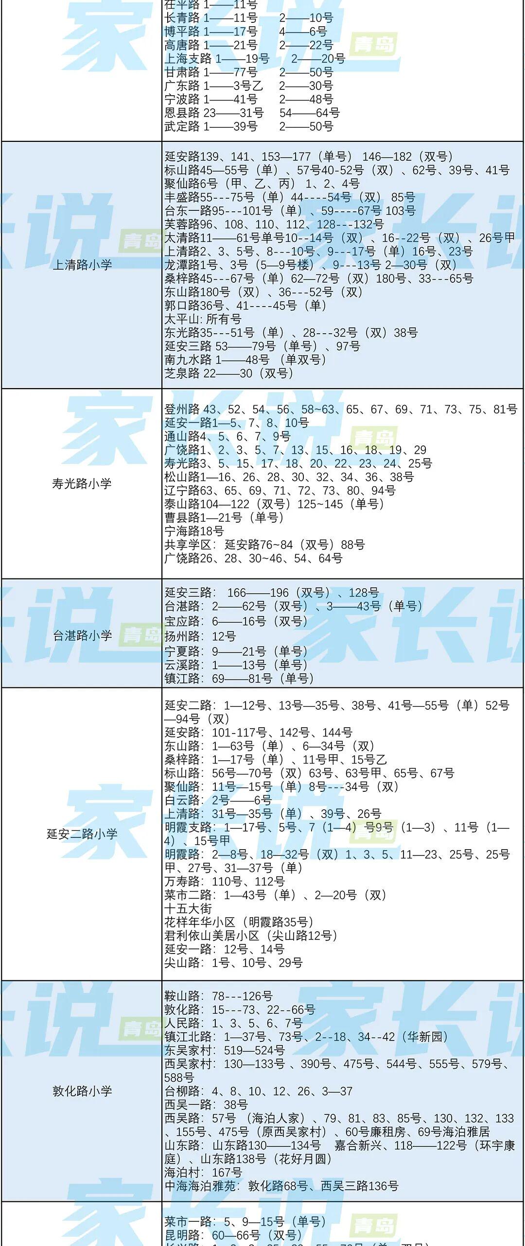 青岛七区最新版小学学区划分汇总!