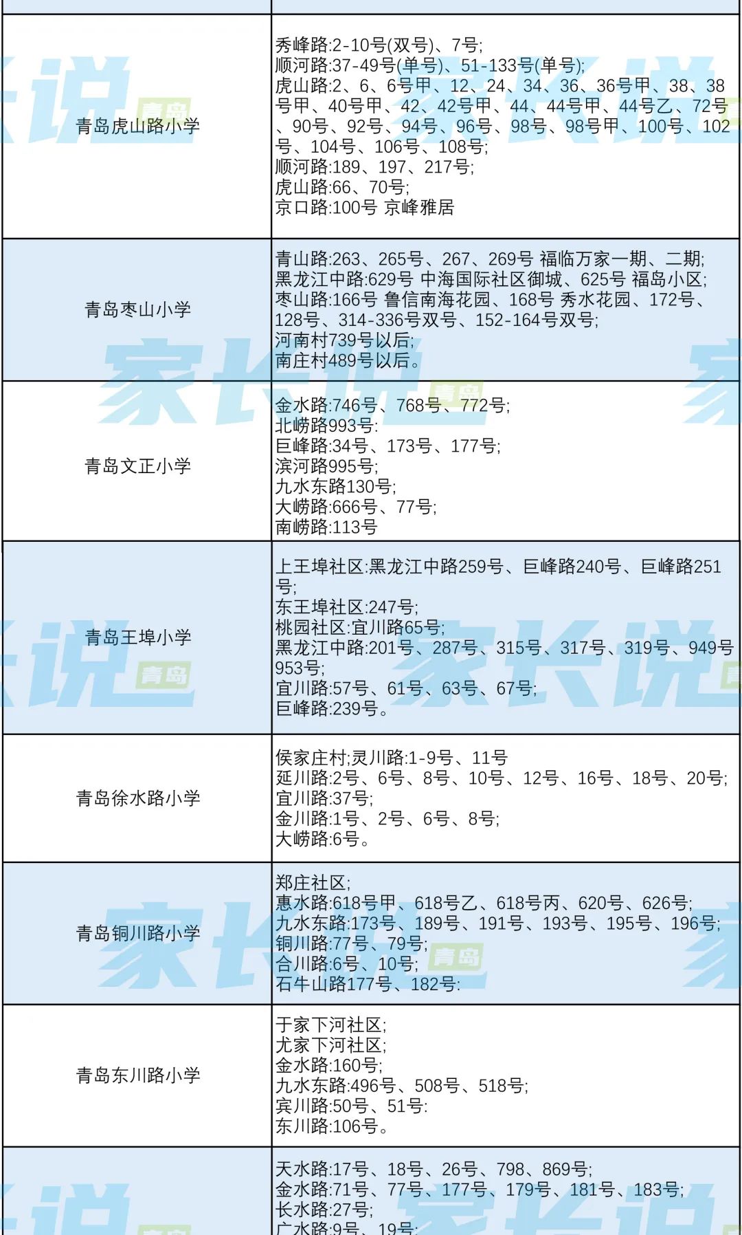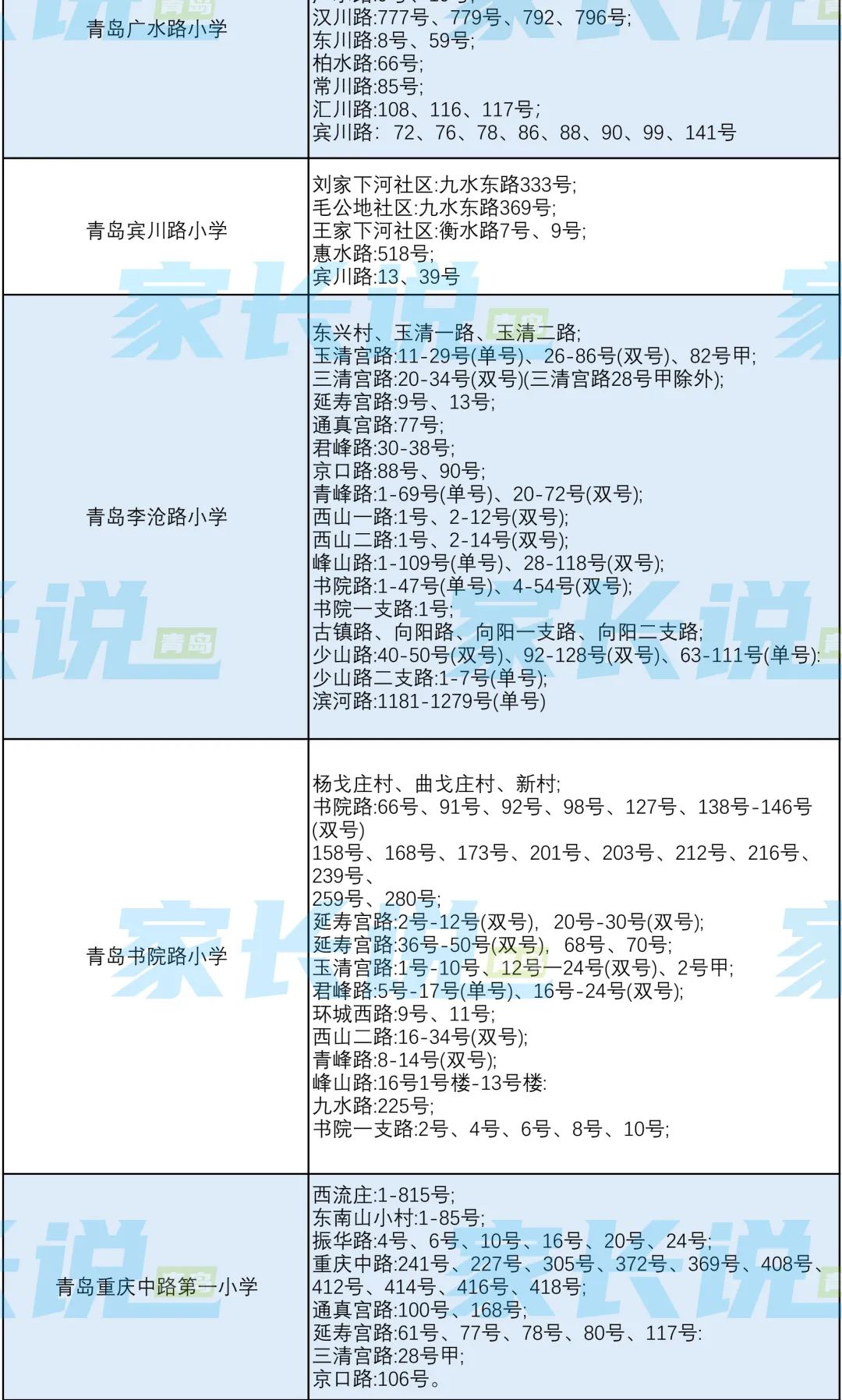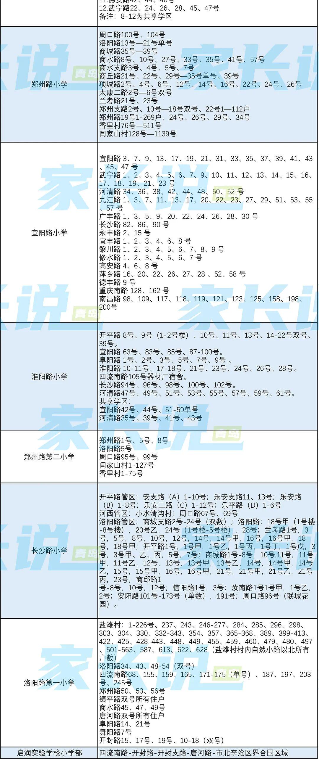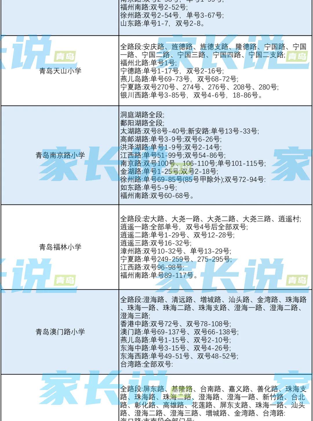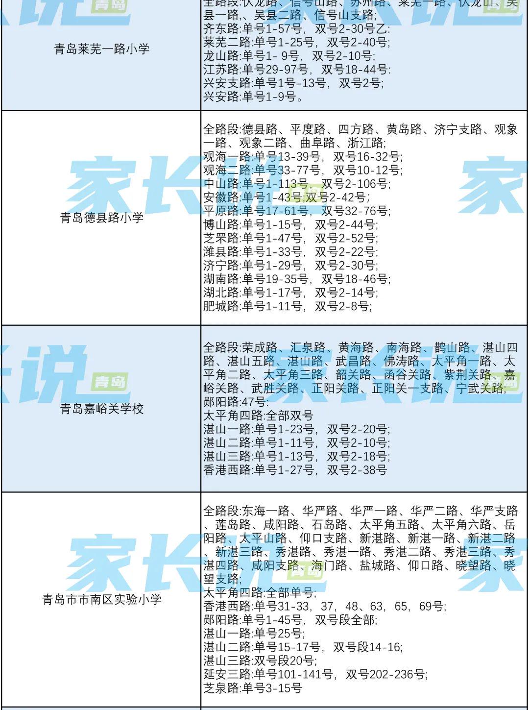 青岛七区最新版小学学区划分汇总!