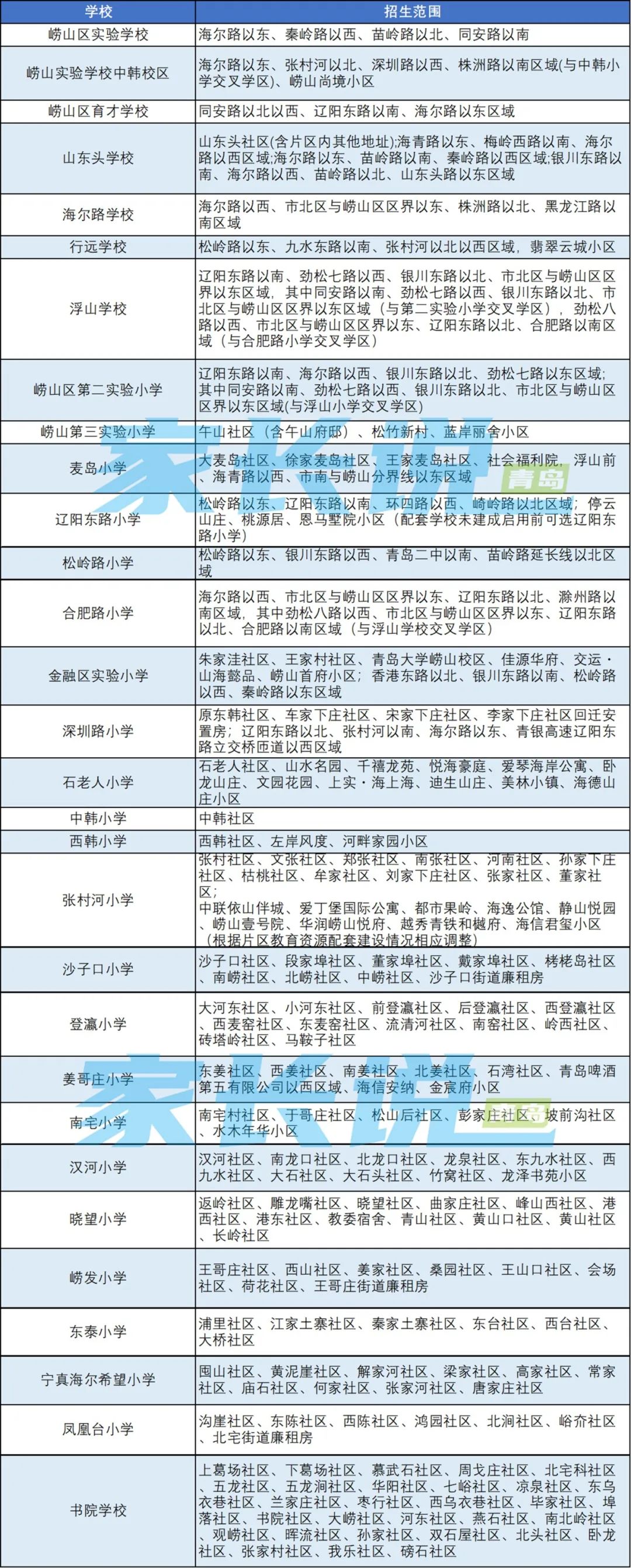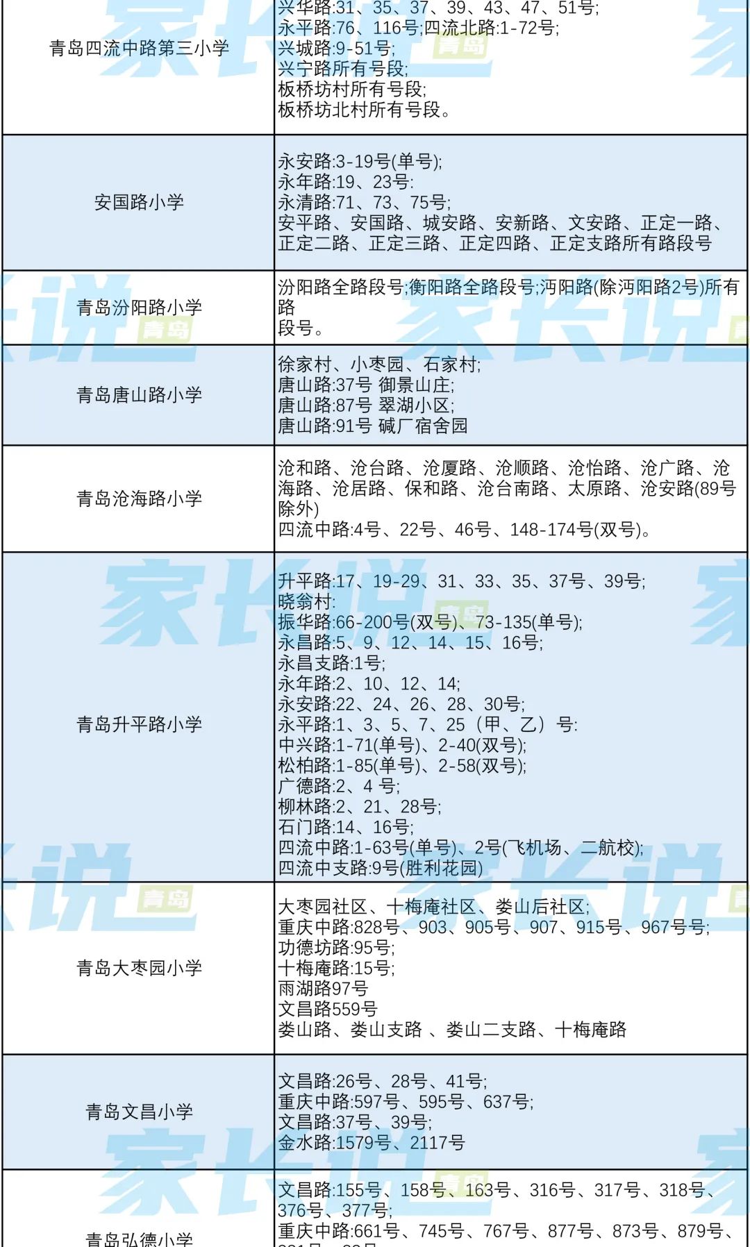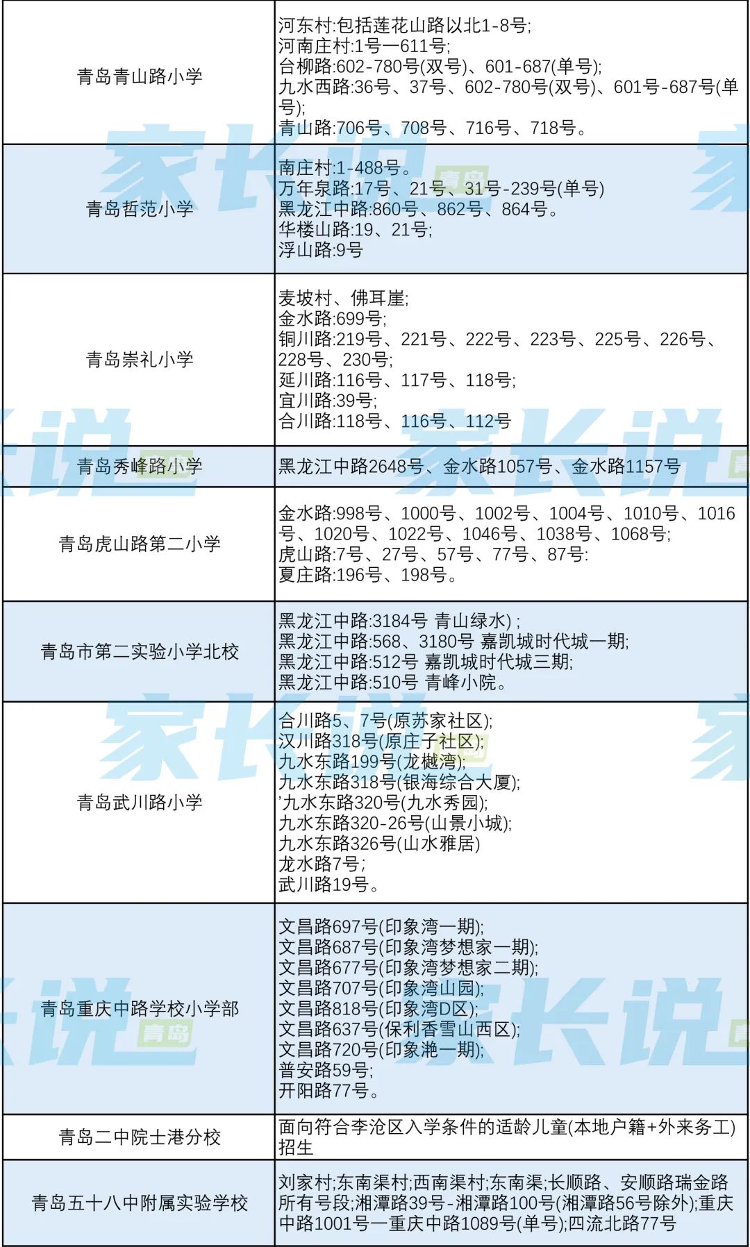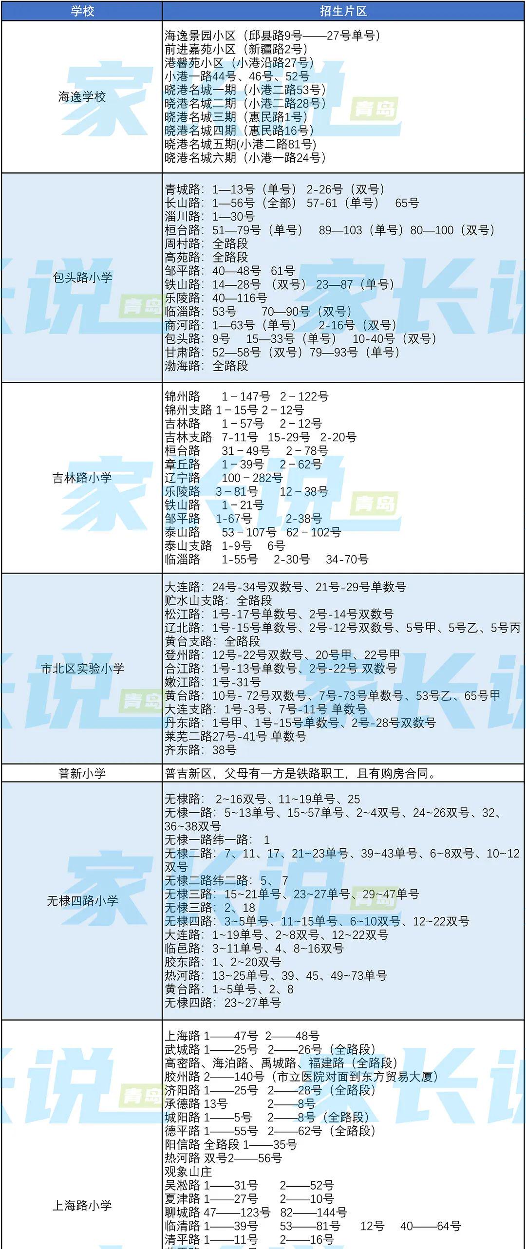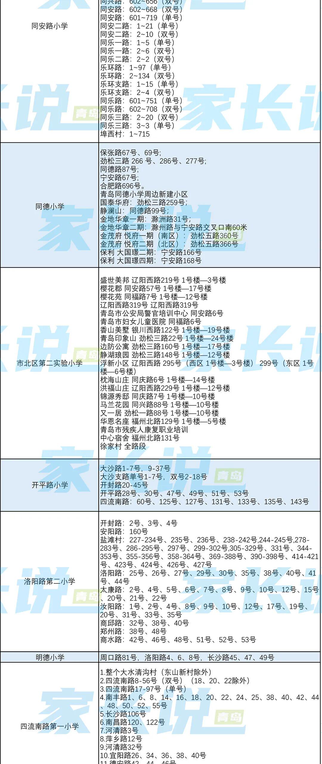 青岛七区最新版小学学区划分汇总!