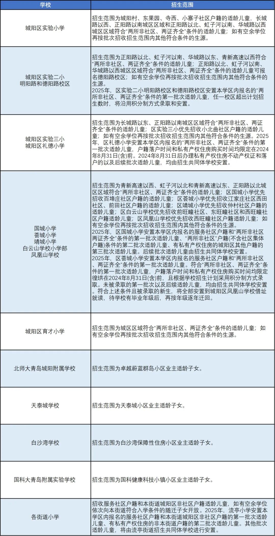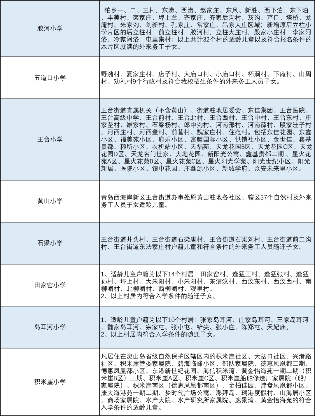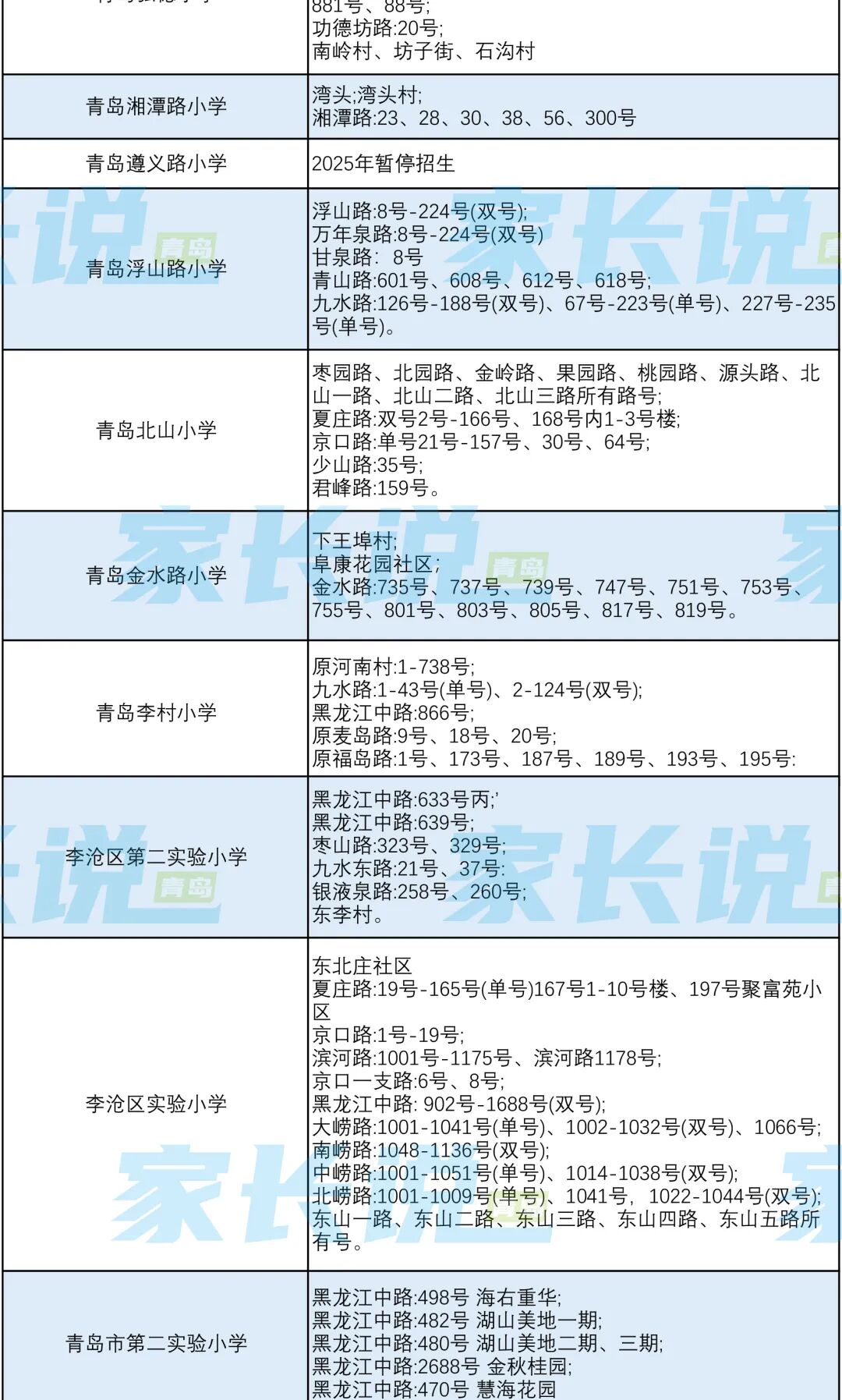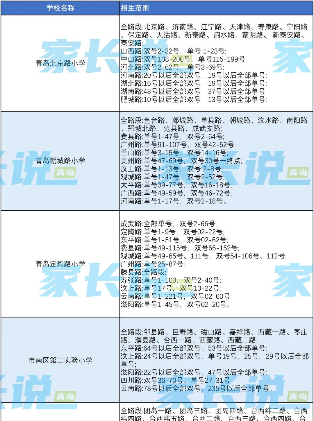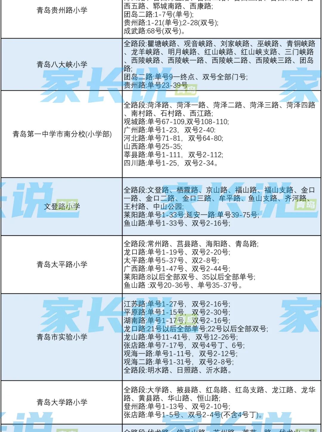 青岛七区最新版小学学区划分汇总!